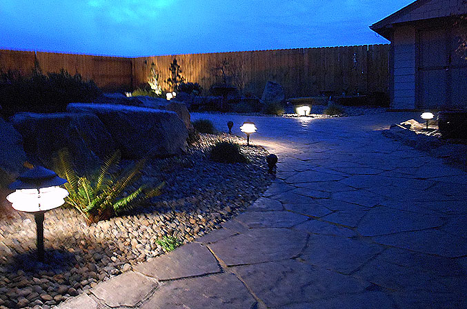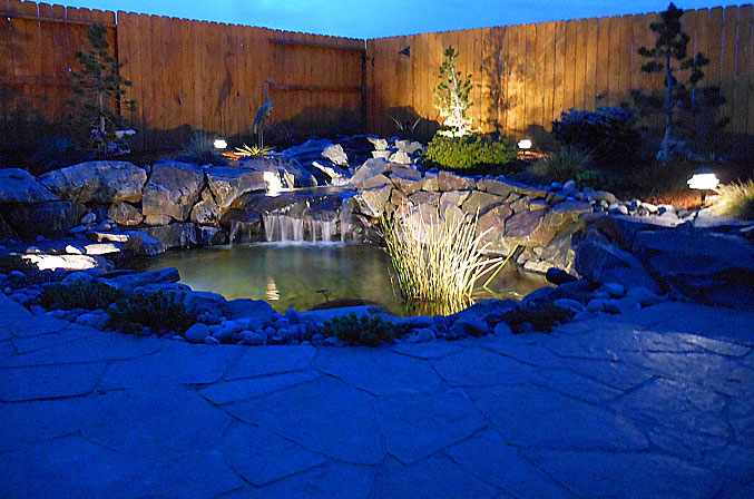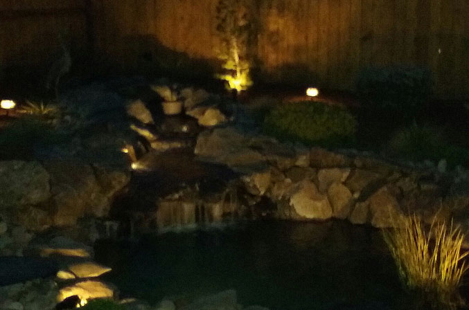 Add a little night life with outdoor lighting to accent and enhance any landscape. Whether defining a pathway, illuminating ponds and water features or highlighting key elements in a landscape Royal Green Landscaping has the products and service you need. We offer a wide variety of choices of high efficiency led outdoor lights. From economy to commercial grade we will find the light fixtures that can fit any budget and work best for your project.